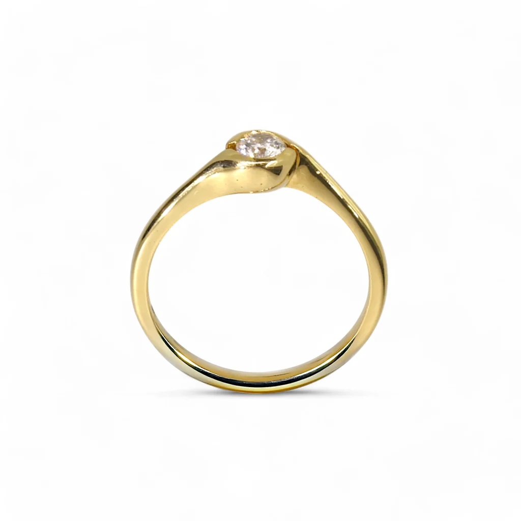 A Spectacular 18ct Yellow Gold diamond Ring, The stone is a 0.24ct brilliant round cut Diamond approximately 3.90mm in size. With a colour grade of F-G and a clarity grade of VS.
