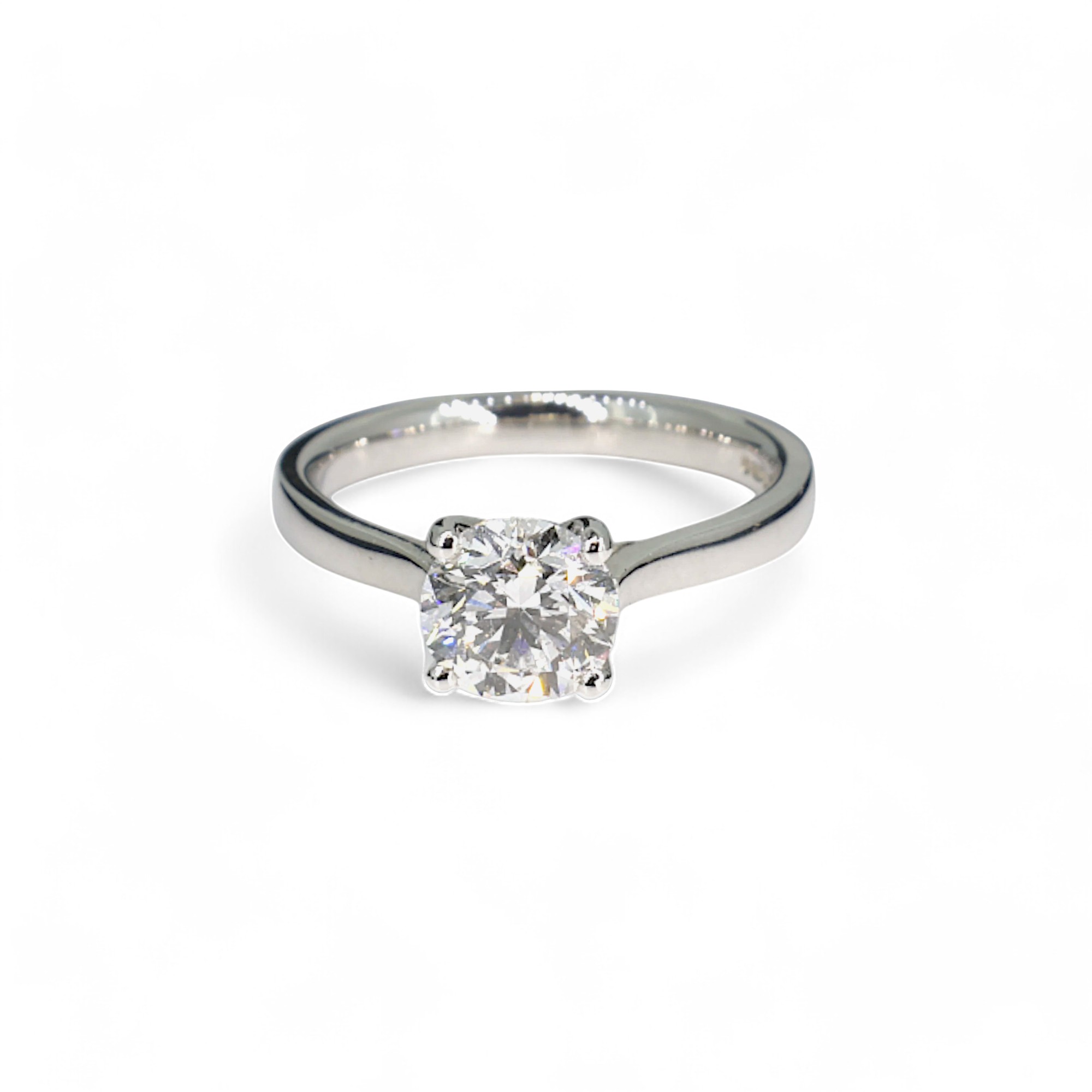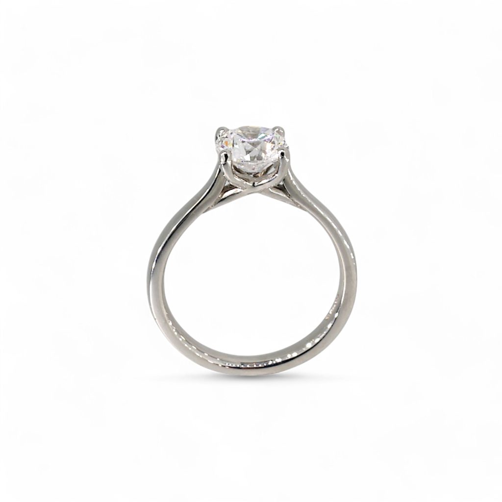 A Remarkable Platinum Ring, The stone is a IGI certified 0.54 ct Brilliant cut Lab Stone approximately 5.17-5.20×3.25mm in size. With a grade of IF and D colour.