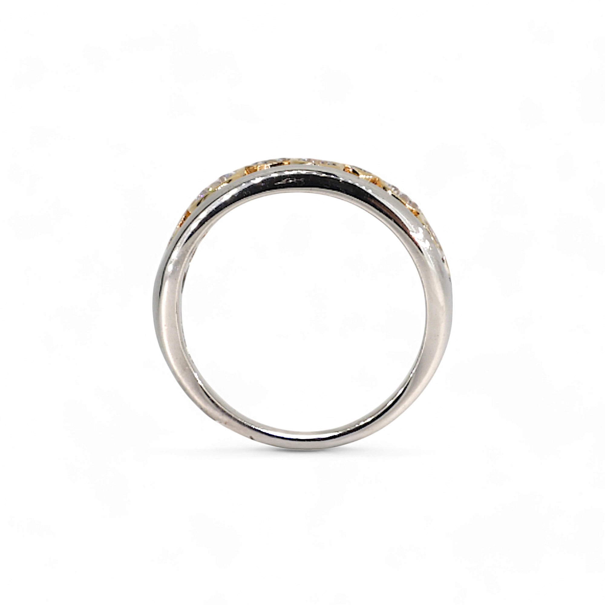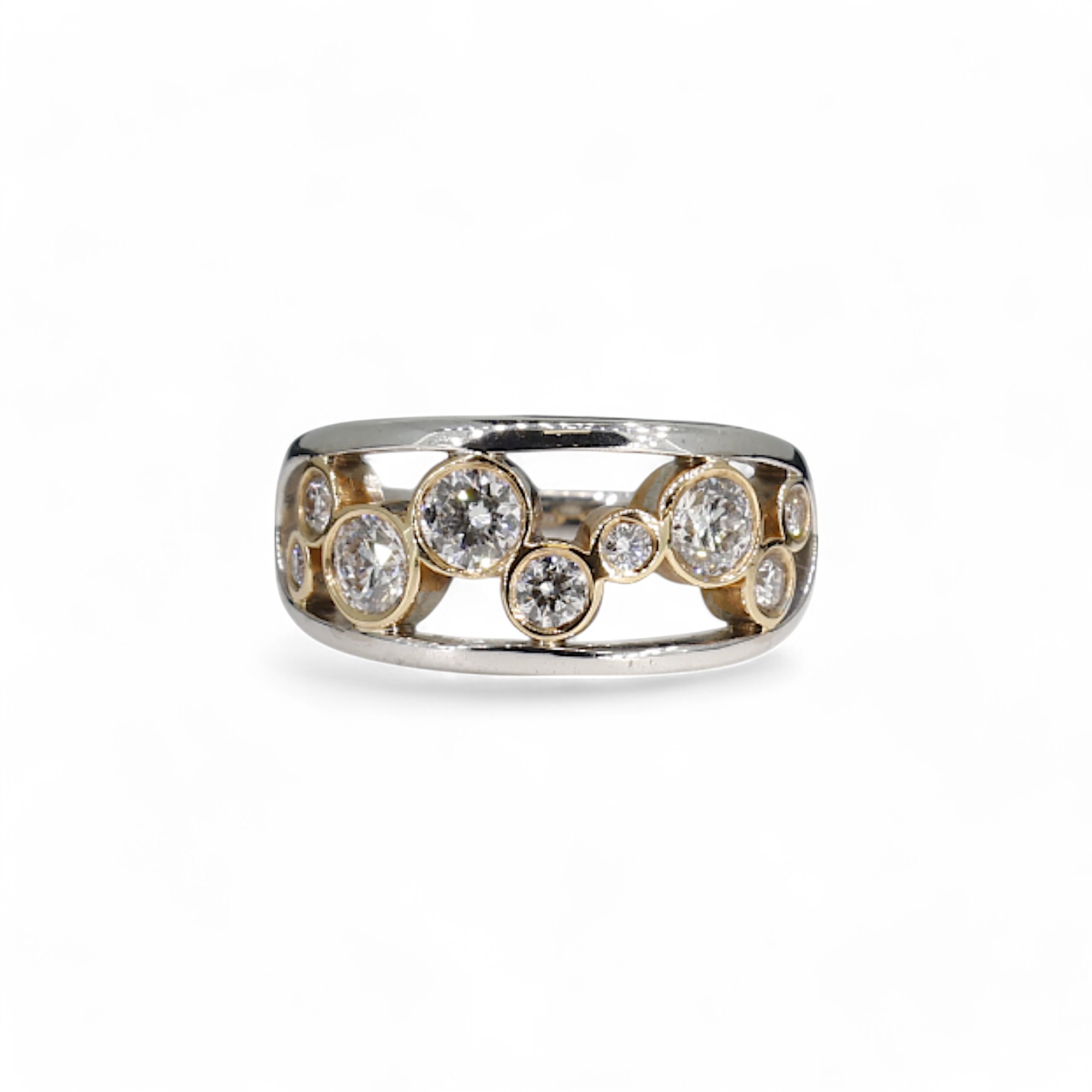 18ct rose and white gold diamond ring, containing brilliant round cut diamonds. This ring has a total diamond weight of 1.05cts and a colour grade of F-G, clarity grade VSI.