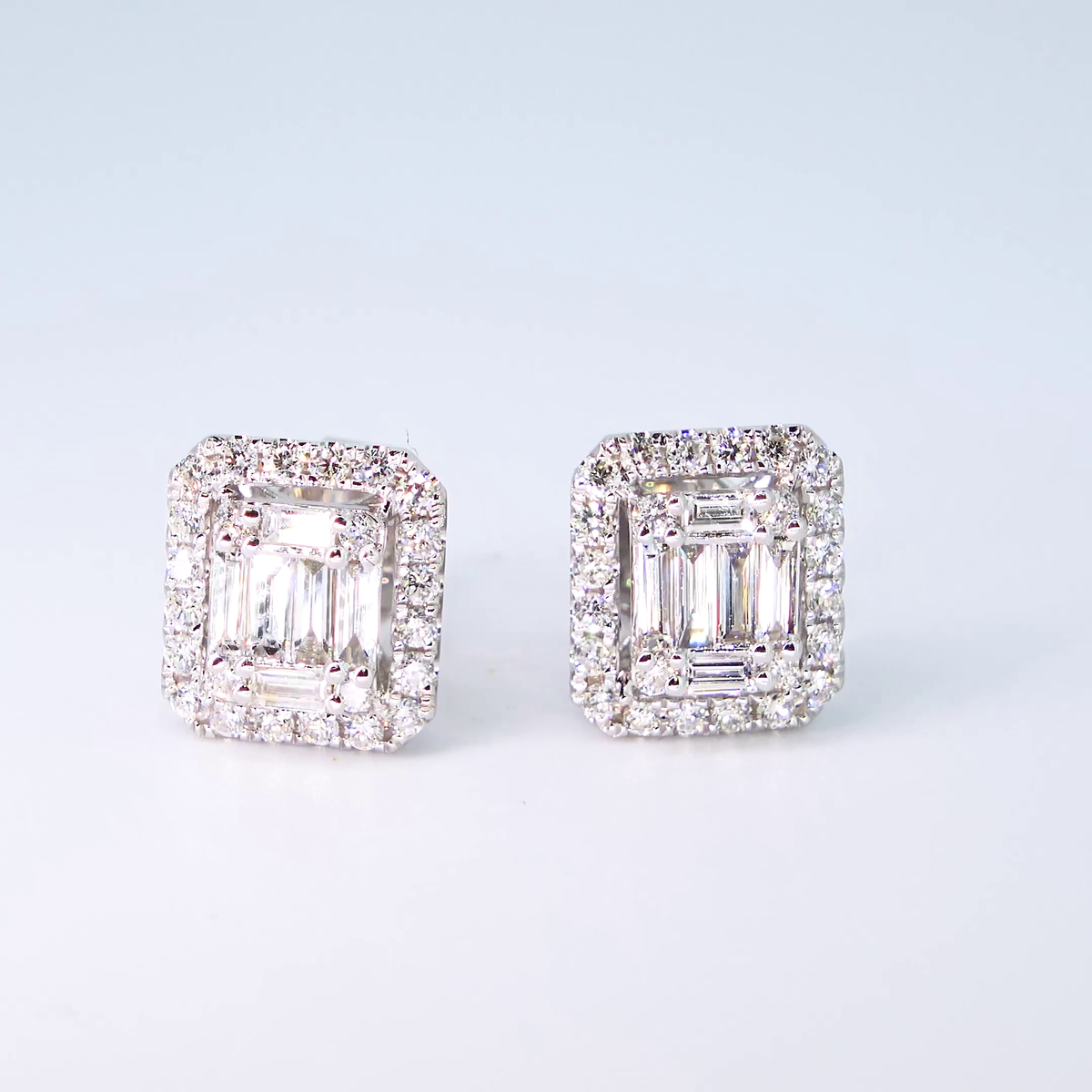 These magnificent halo earrings have a total diamond weight of 0.53ct. The diamonds have a colour grade of F-G and a clarity grade of VSI.