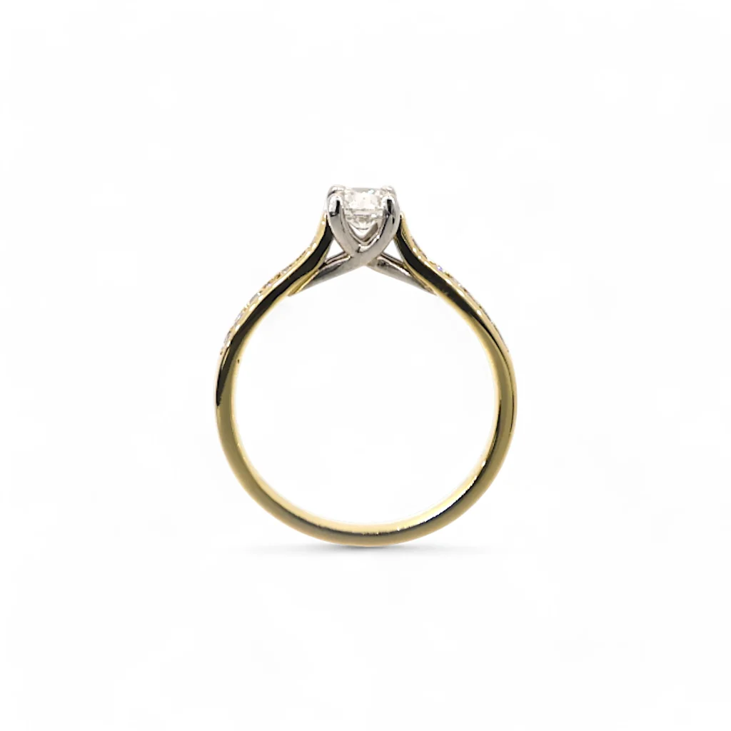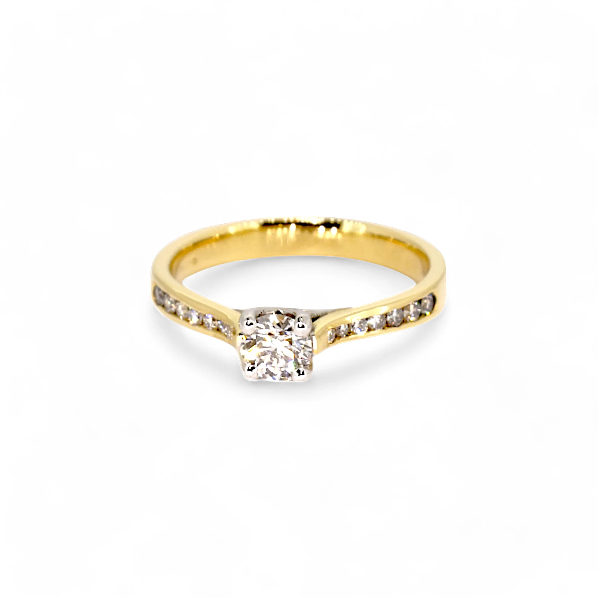 18ct Yellow Gold fine twist design diamond Set shoulder Ring