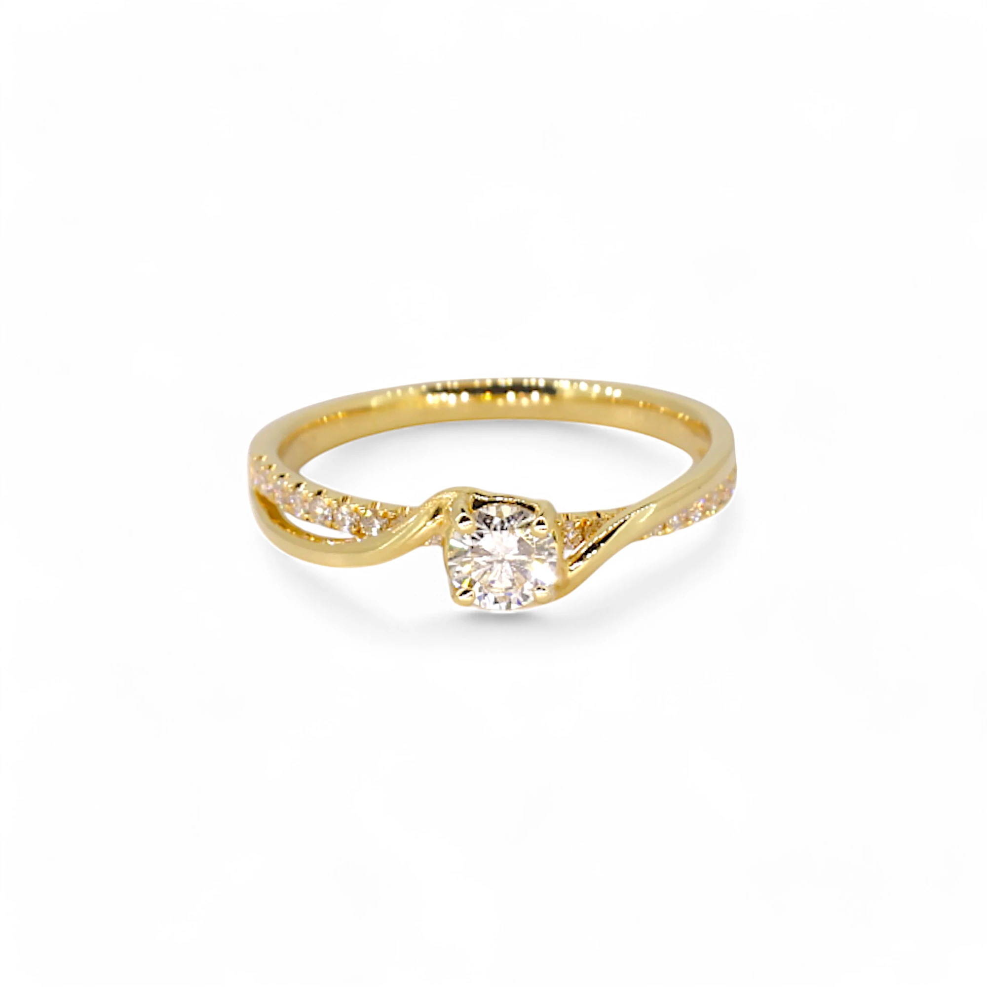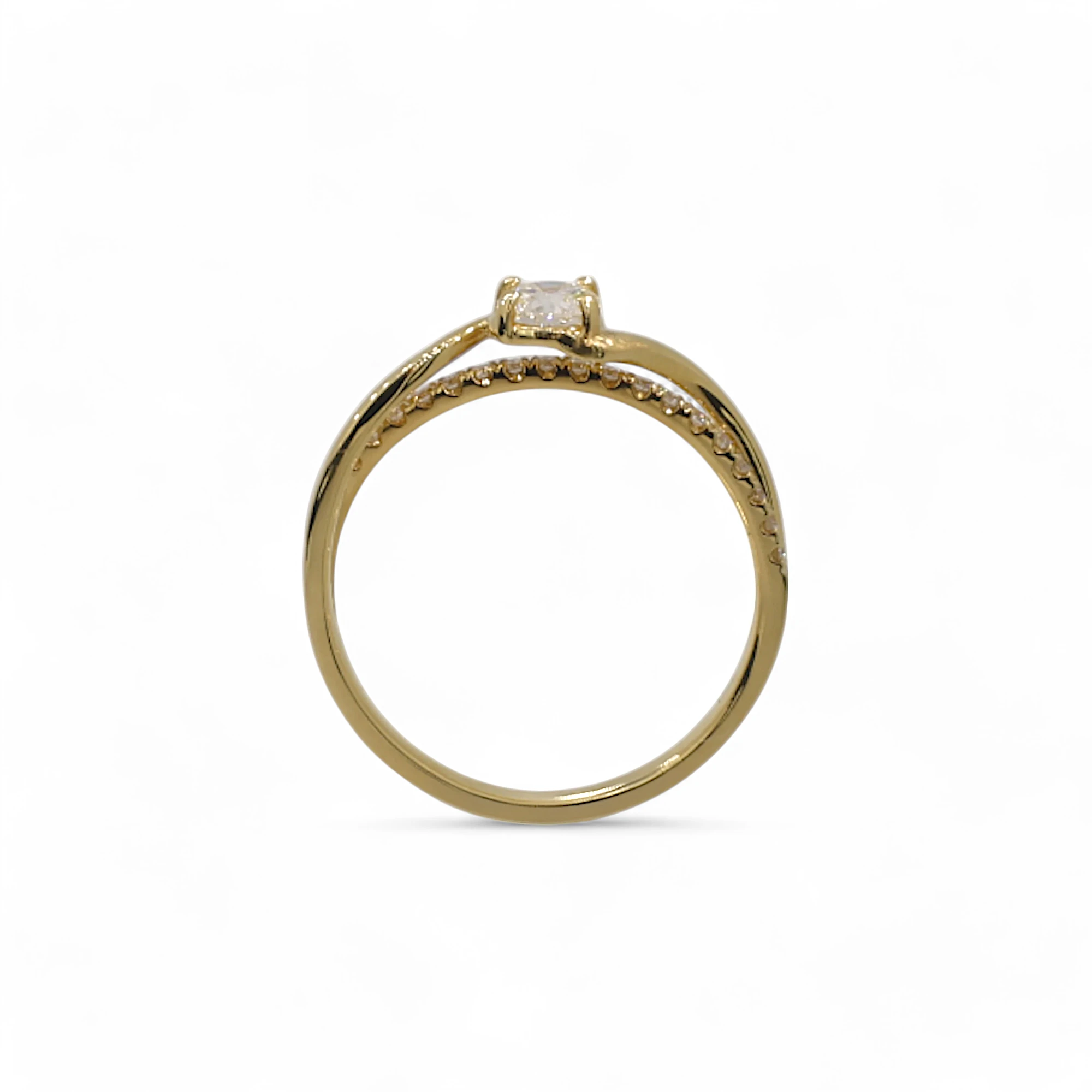 18ct Yellow Gold fine twist design diamond Set shoulder Ring