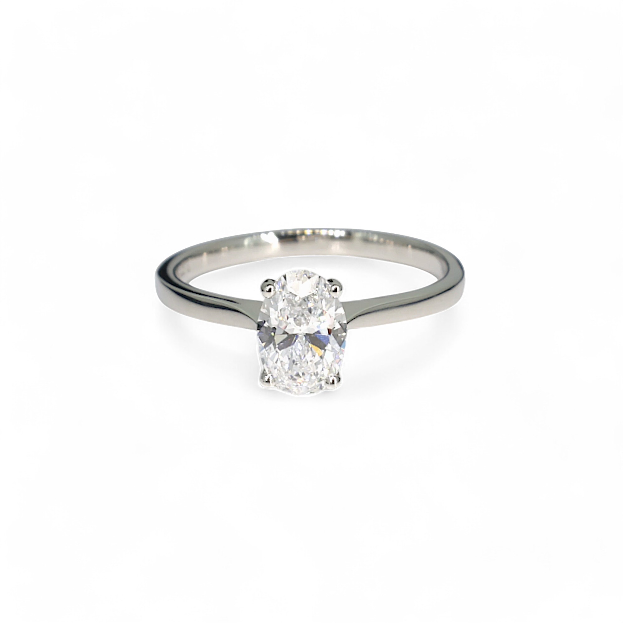 A Magnificent Platinum Ring, The stone is a IGI certified 2.01 ct Oval cut Lab Stone approximately 10.18 x 7.15 x 4.37mm in size. With a grade of VS2 and D colour.