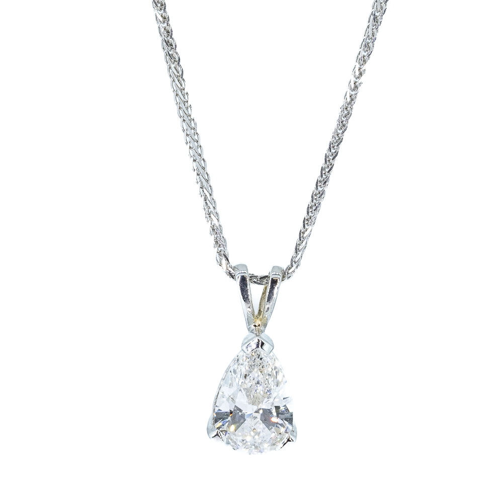 9ct White Gold Lab Grown Pear Shaped 1.01ct Diamond Pendant