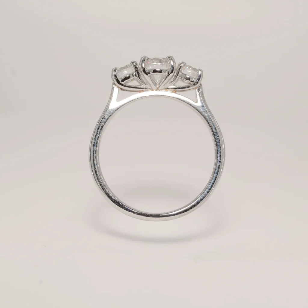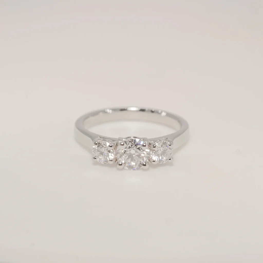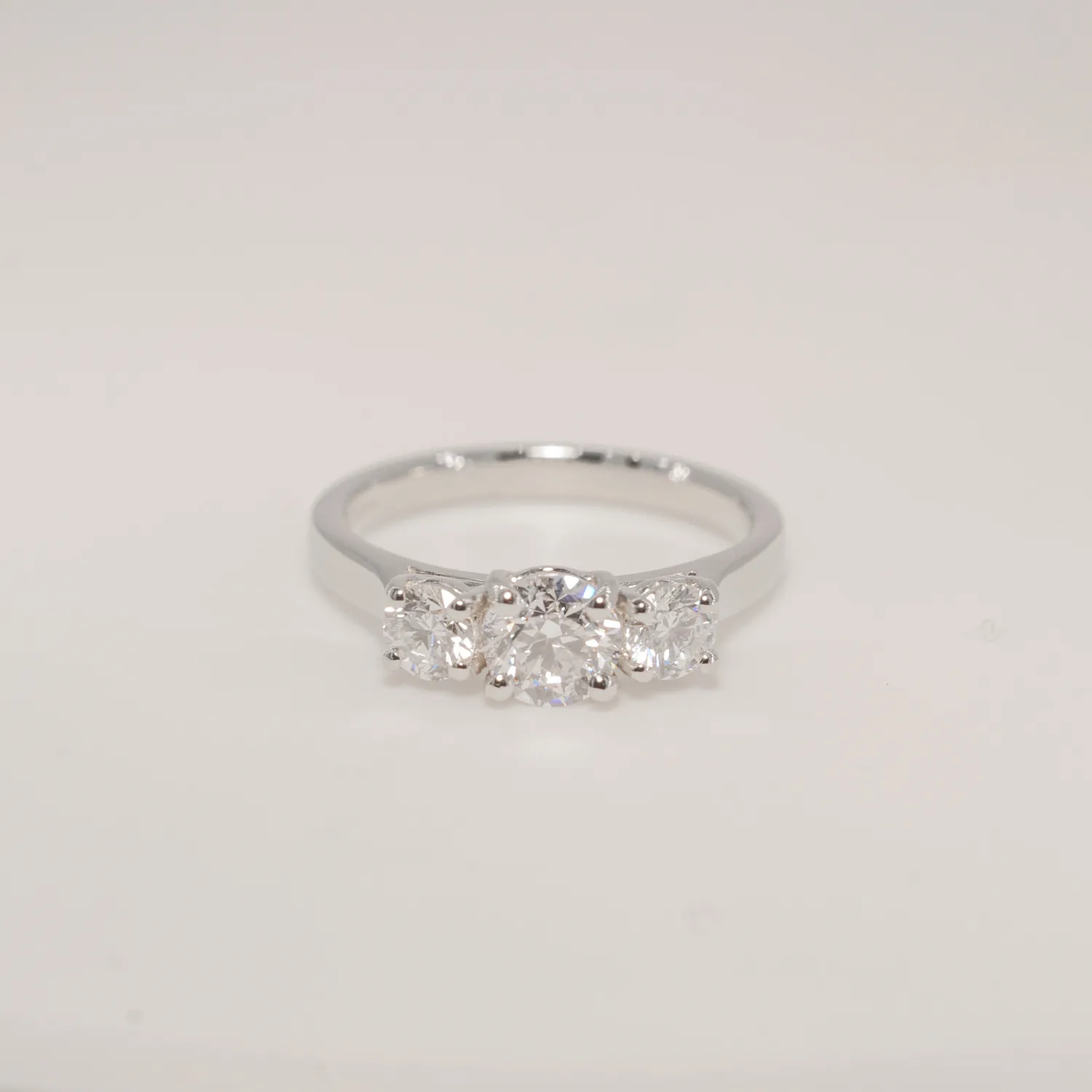 This is our gorgeous platinum diamond ring which is designed so you achieve maximum sparkle. The centre diamond is the largest with a total weight of 0.50ct. This stone is GIA certified with a D colour and a VS2 clarity grade. The outer diamonds have a total weight of 0.50ct.