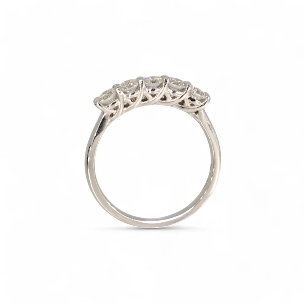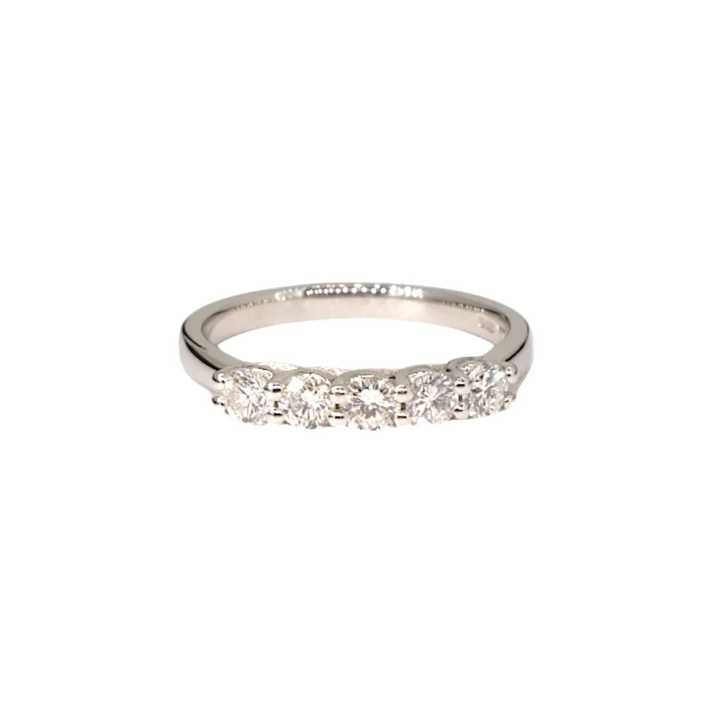 Platinum diamond band with brilliant round cut diamonds. The Inclusive diamond weight of this ring is 1.01ct. The diamonds colour grades are F-G and the clarity grade VSI.