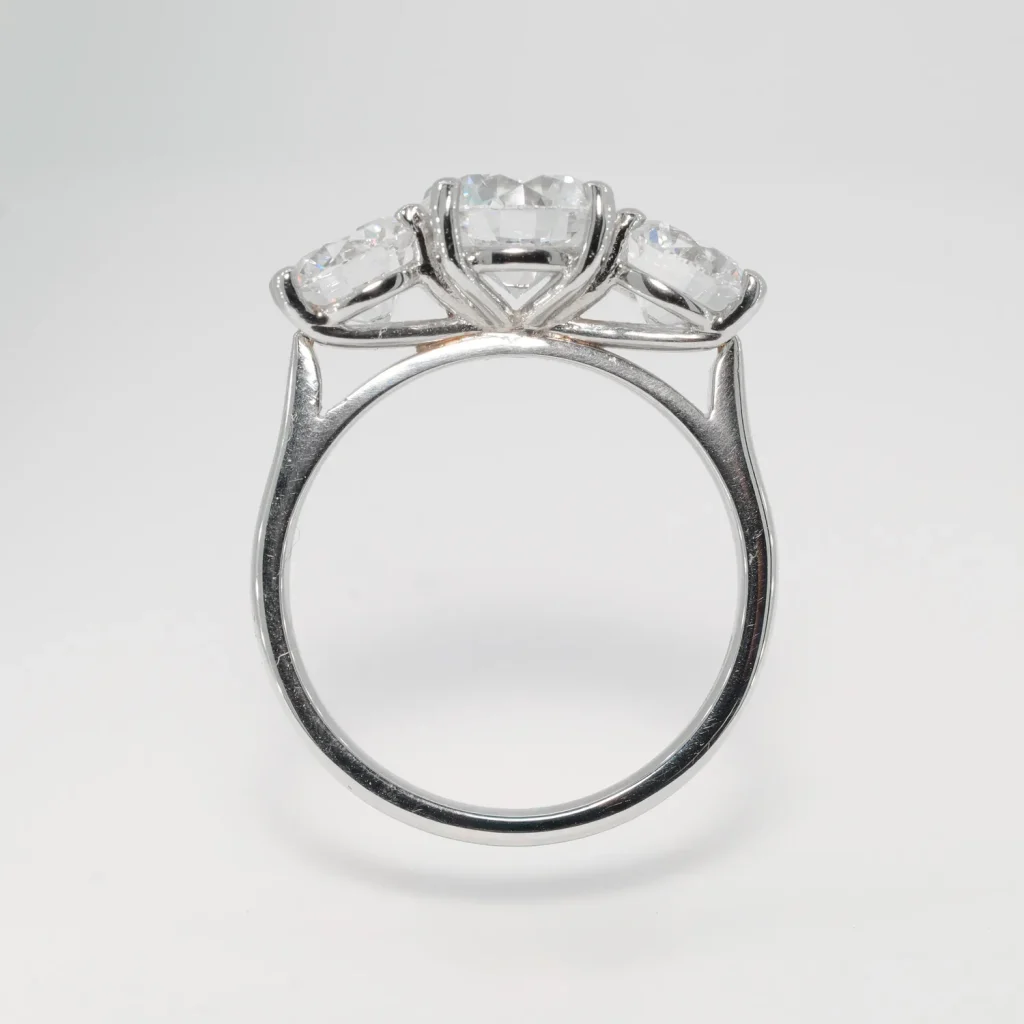 Platinum lab grown oval three stone ring