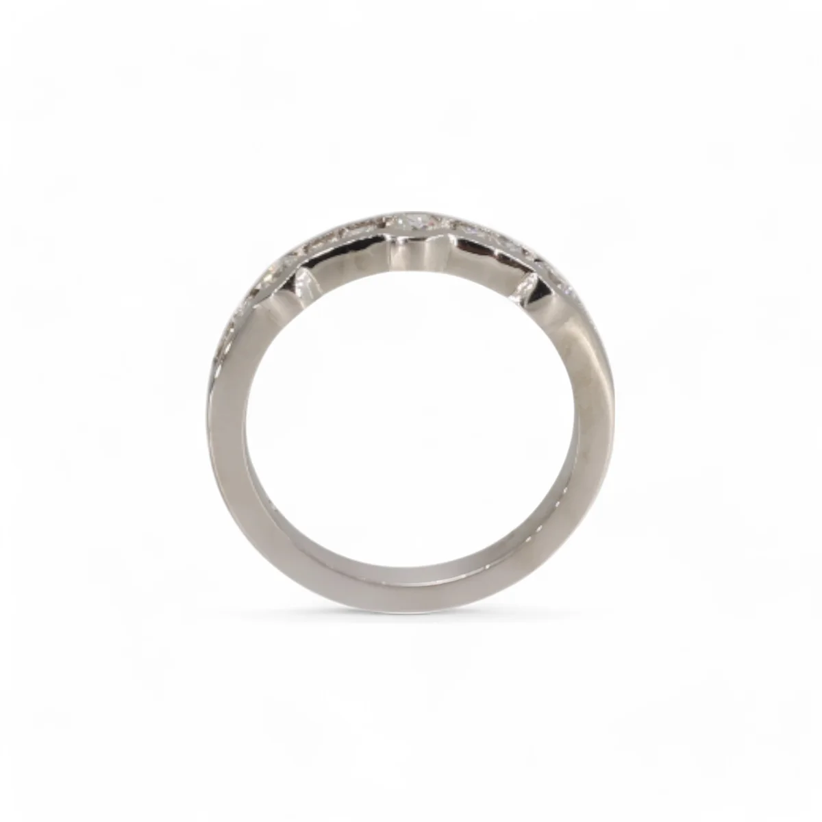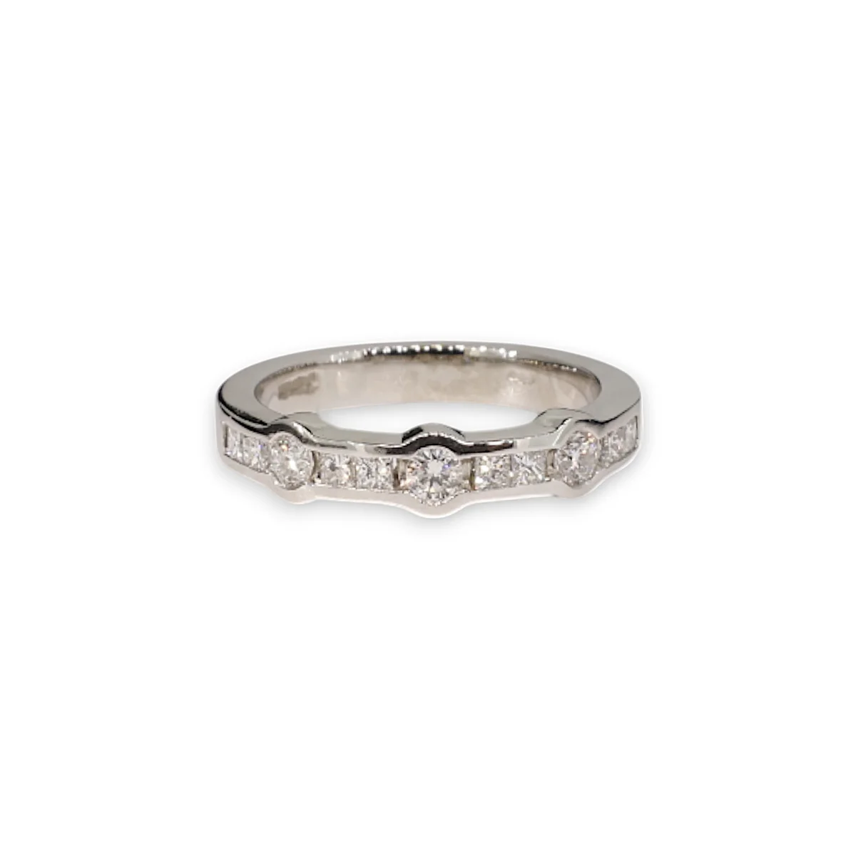 Platinum specially designed diamond band with brilliant round and princess cut diamonds. Inclusive diamond weight of 0.80ct. The diamonds colour grades are F-G and the clarity grade VSI.