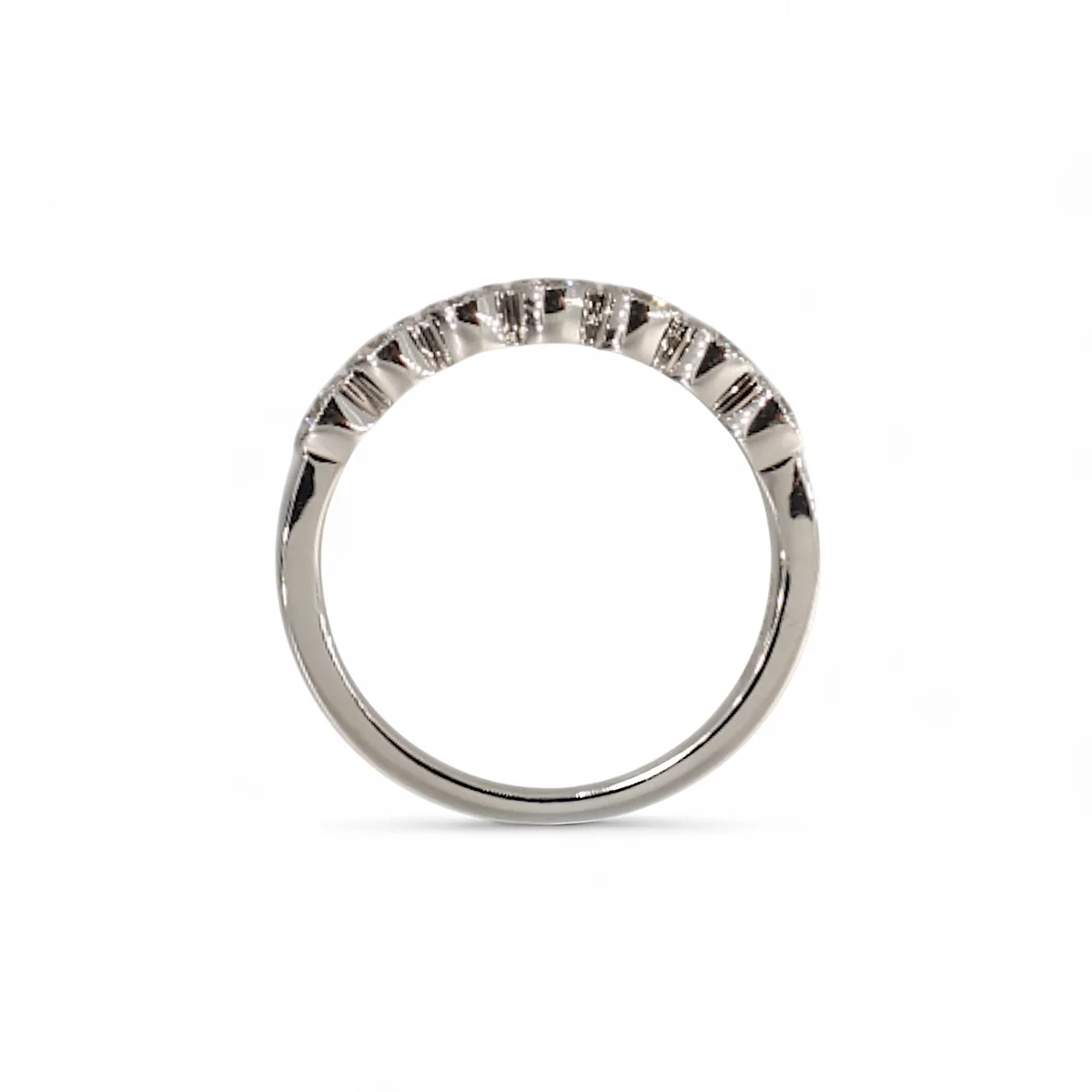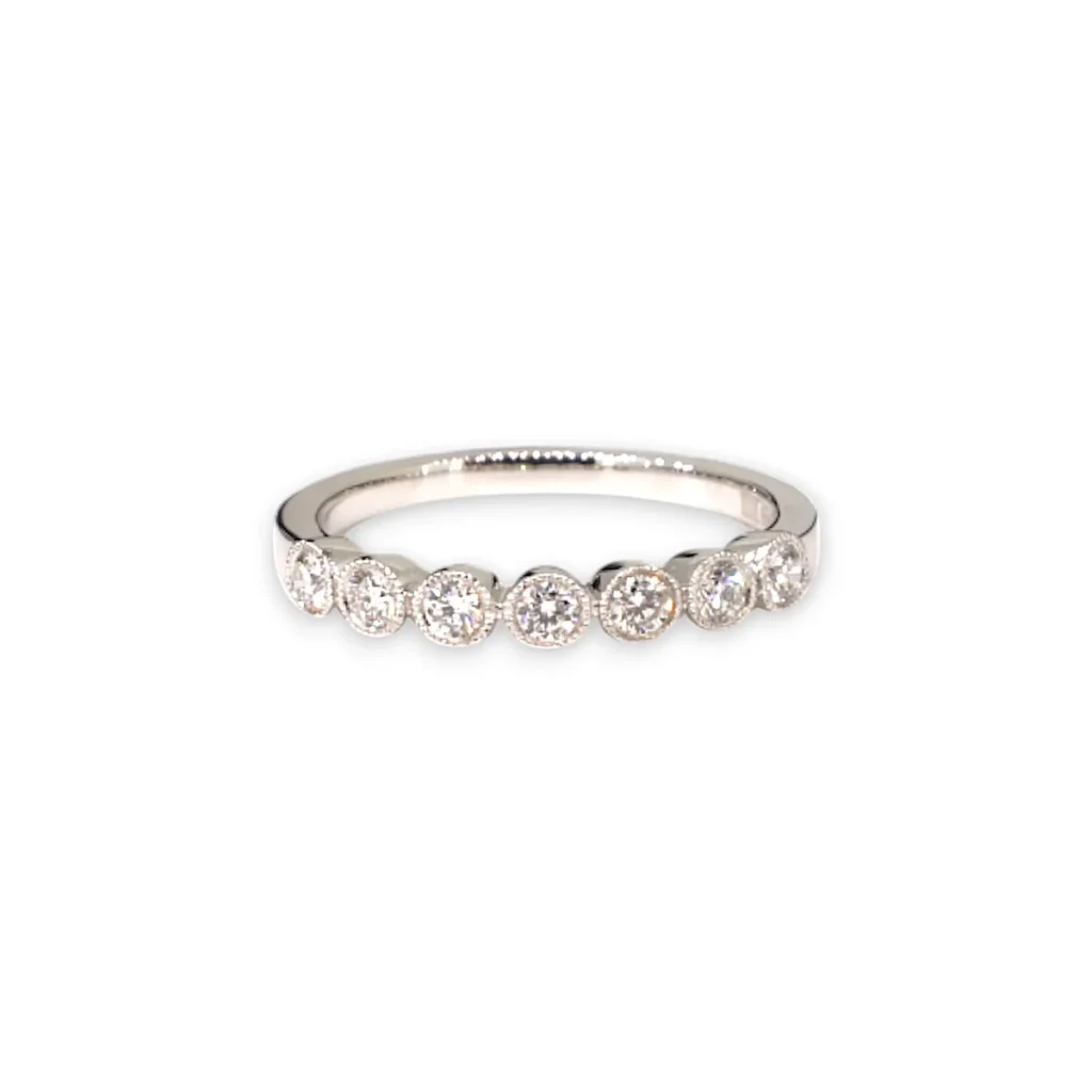 Platinum diamond vintage rim set design with brilliant round cut diamonds. The Inclusive diamond weight of this ring is 0.27ct. The diamonds colour grades are F-G and the clarity grade VSI.
